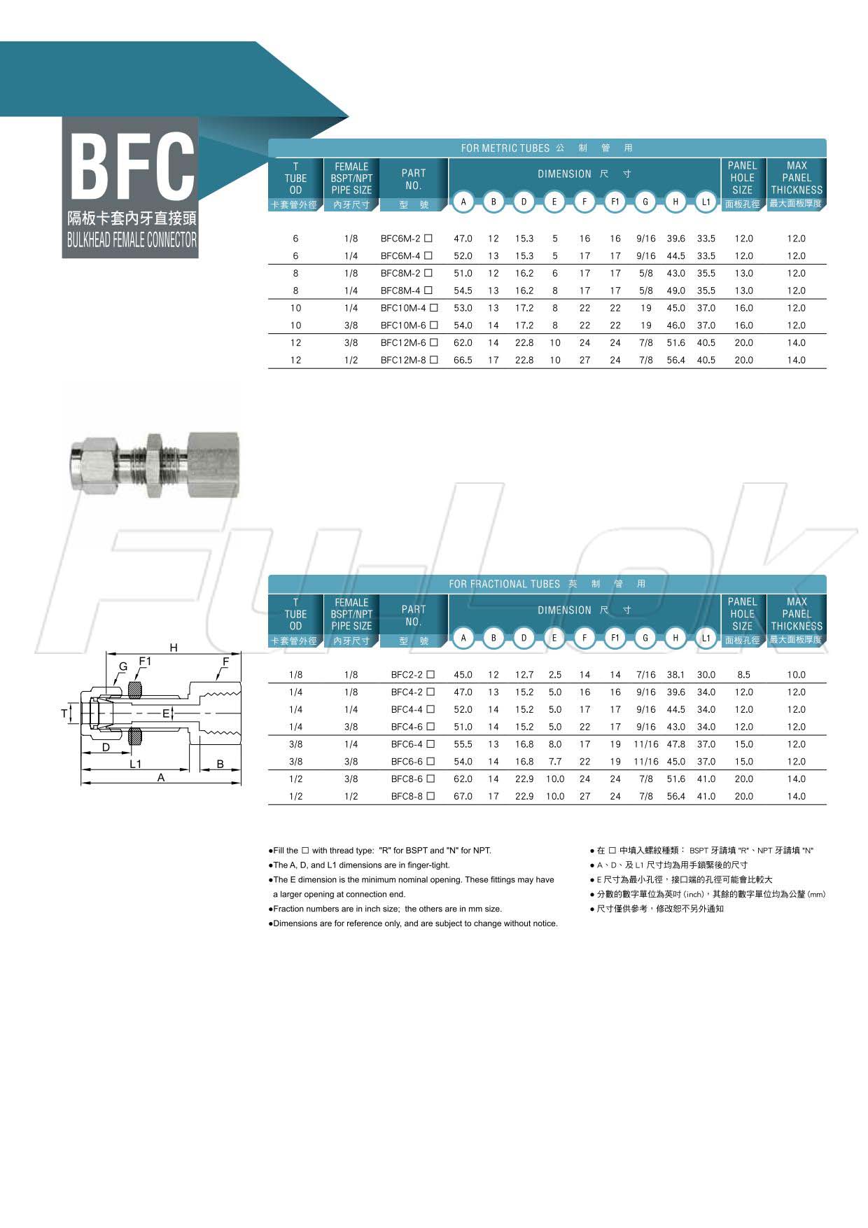 2.英制管用:外徑1/8"~1/2"