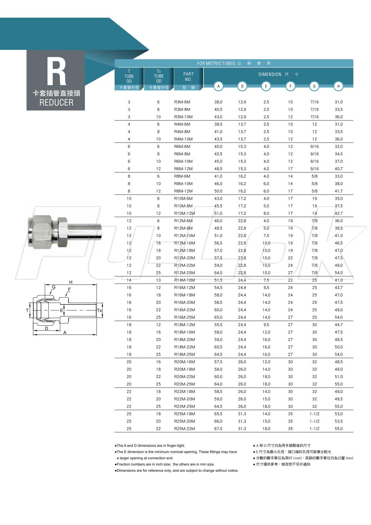 1.公制管用:外徑6mm~25mm