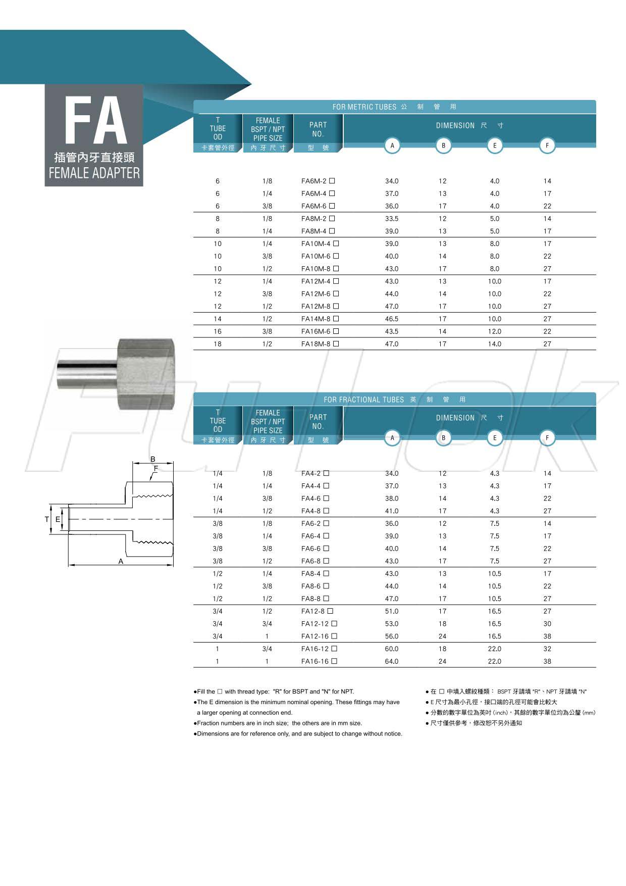 2.英制管用:外徑1/4"~1"