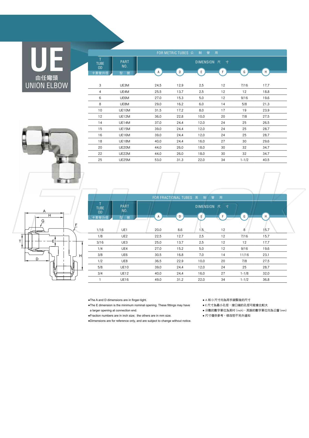 2.英制管用:外徑1/16"~1"