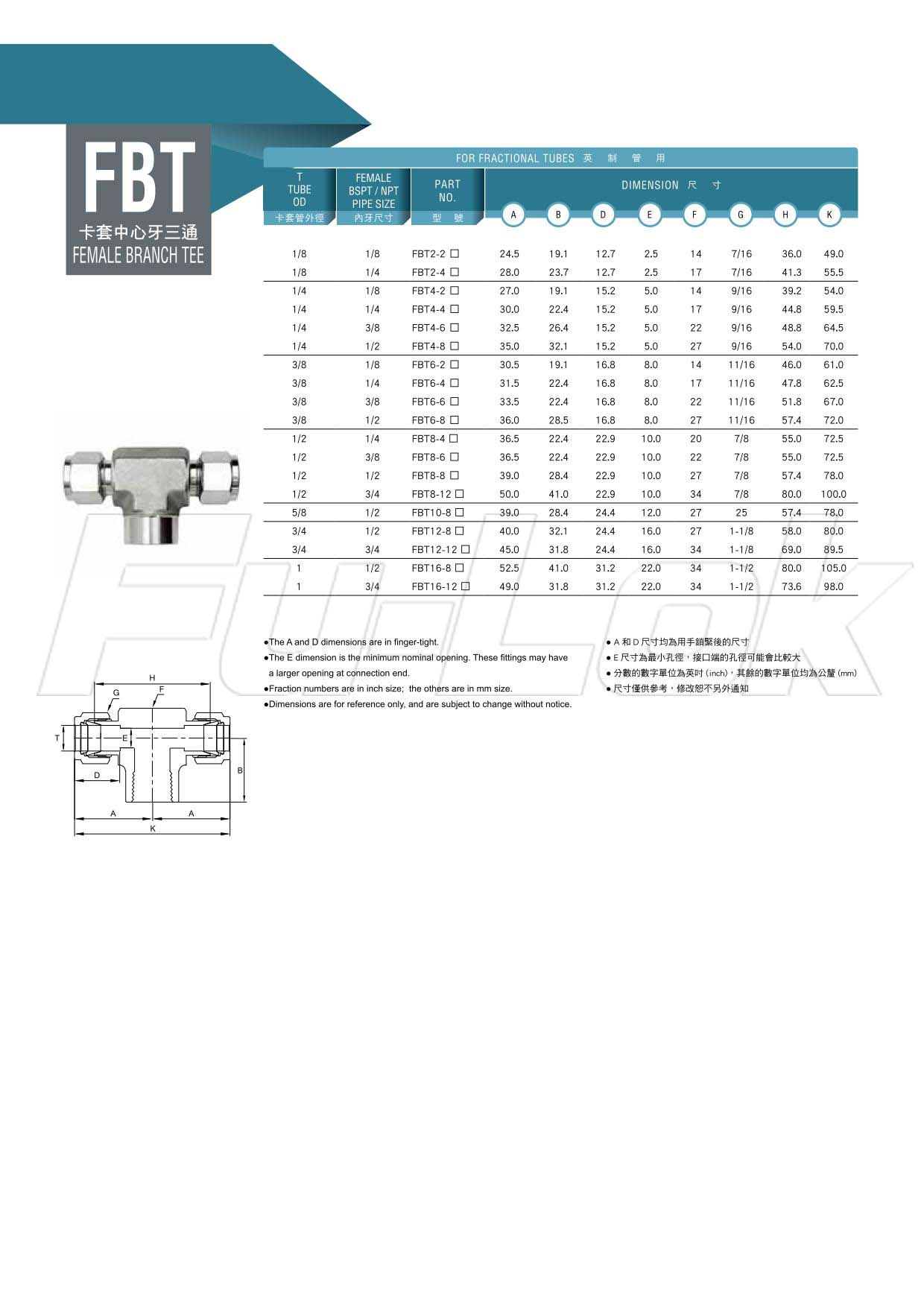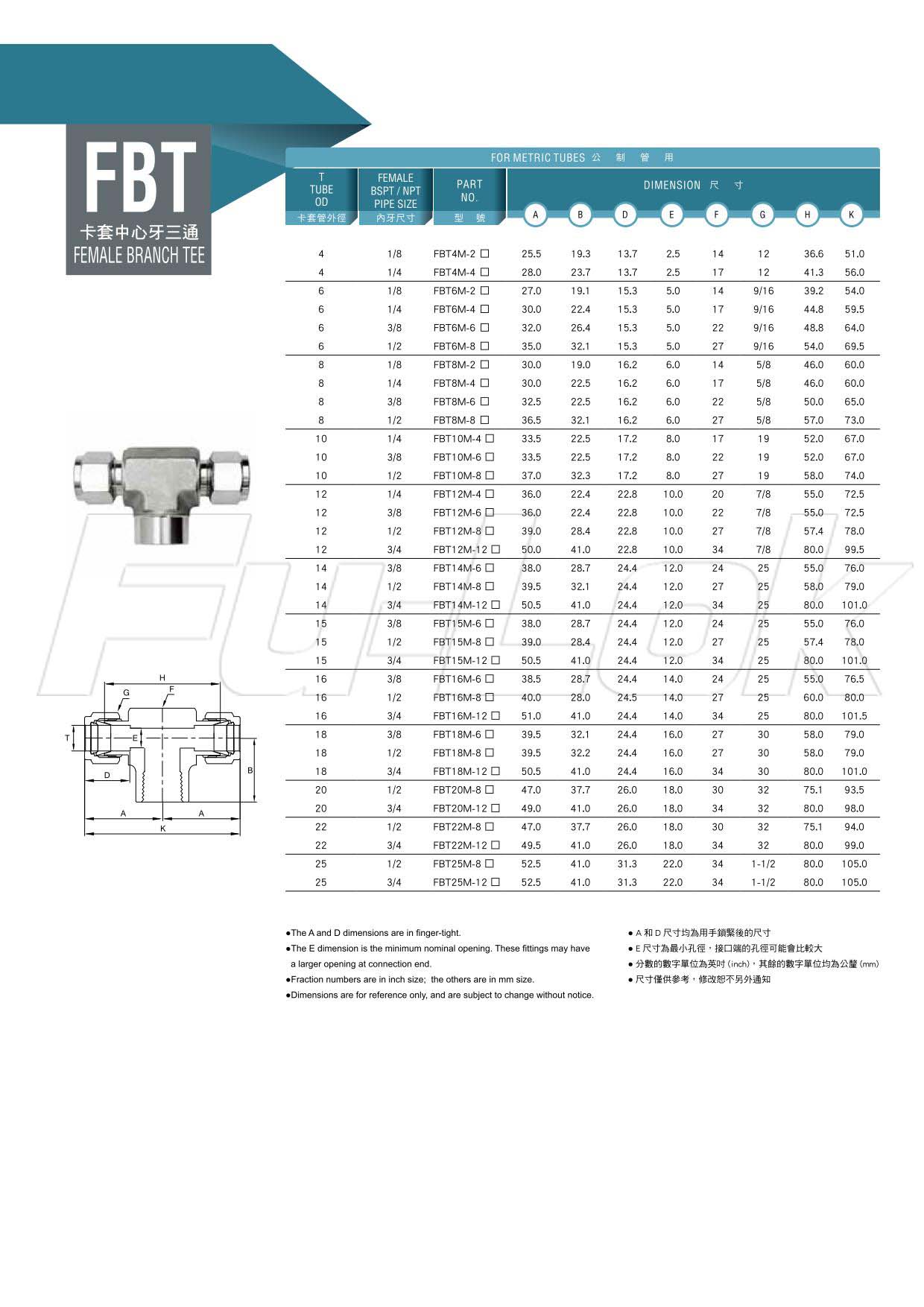 2.英制管用:外徑1/8"~1"