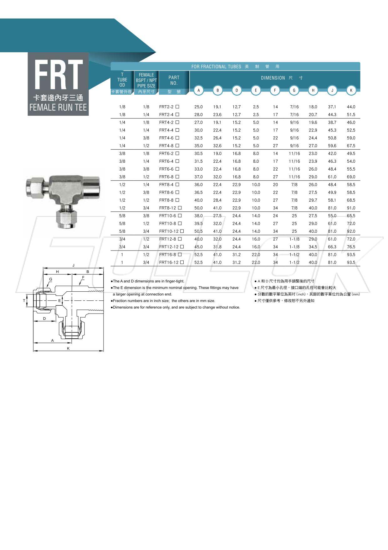 卡套管外徑1.公制管用:外徑4mm~25mm