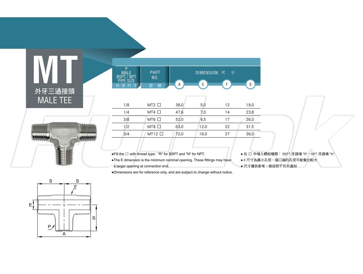 2.螺紋種類:BSPT牙(R)、NPT牙(N)