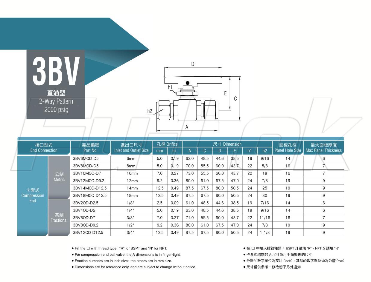 1.卡套式,公制:外徑6mm~18mm卡套式,英制:外徑1/8"~1"