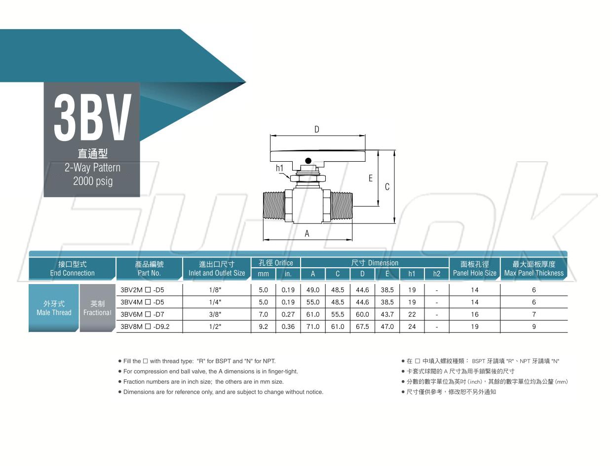 1.四角棒材閥體最大工作壓力 2000 psig (138 bar)2.直通型球閥使用於雙流向,提供開啟關閉功能