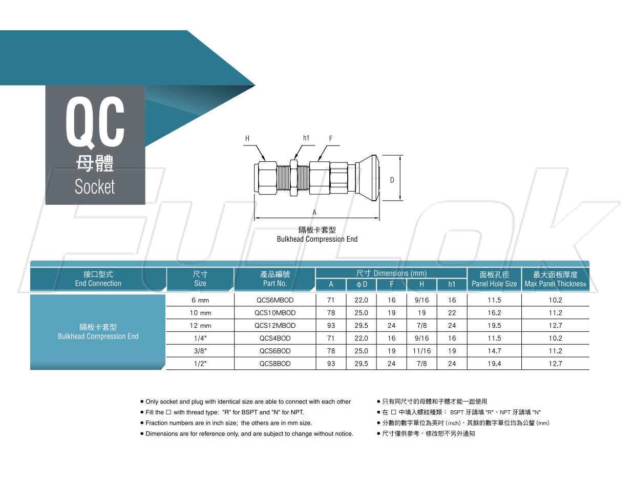 QC快速接頭母體-隔板卡套型