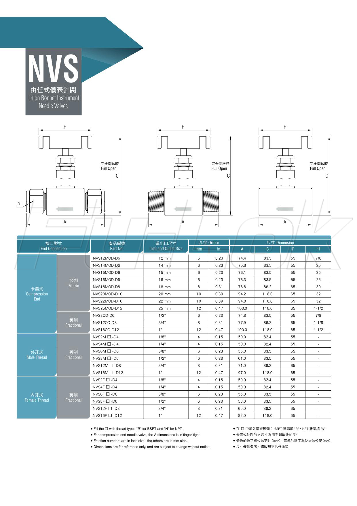 1.卡套式,公制:外徑12mm~25mm卡套式,英制:外徑1/2"~1"